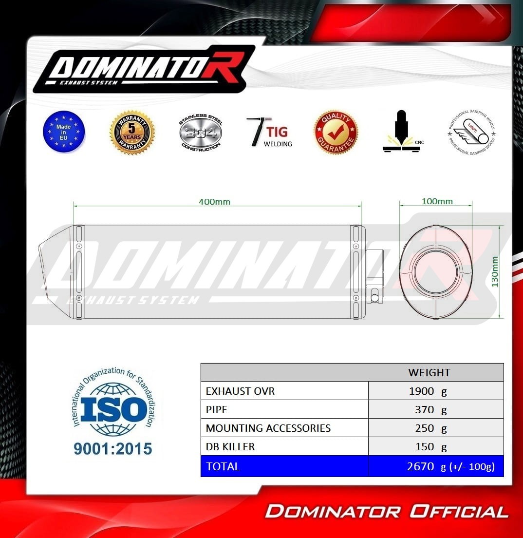 The Dominator Exhaust will change the nature of your motorcycle giving it a unique sound. The Exhaust system will increase the power and torque of the engine, while reducing the weight of the muffler.