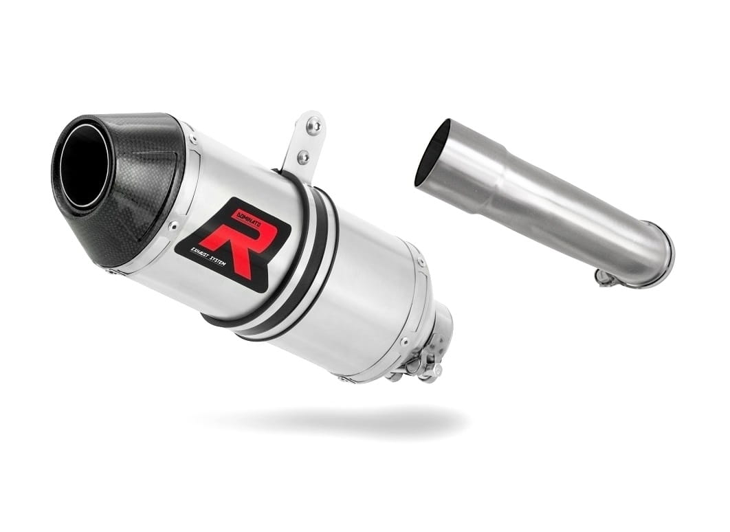 - Sporty straight through Muffler in satin finish with Carbon End Cap
